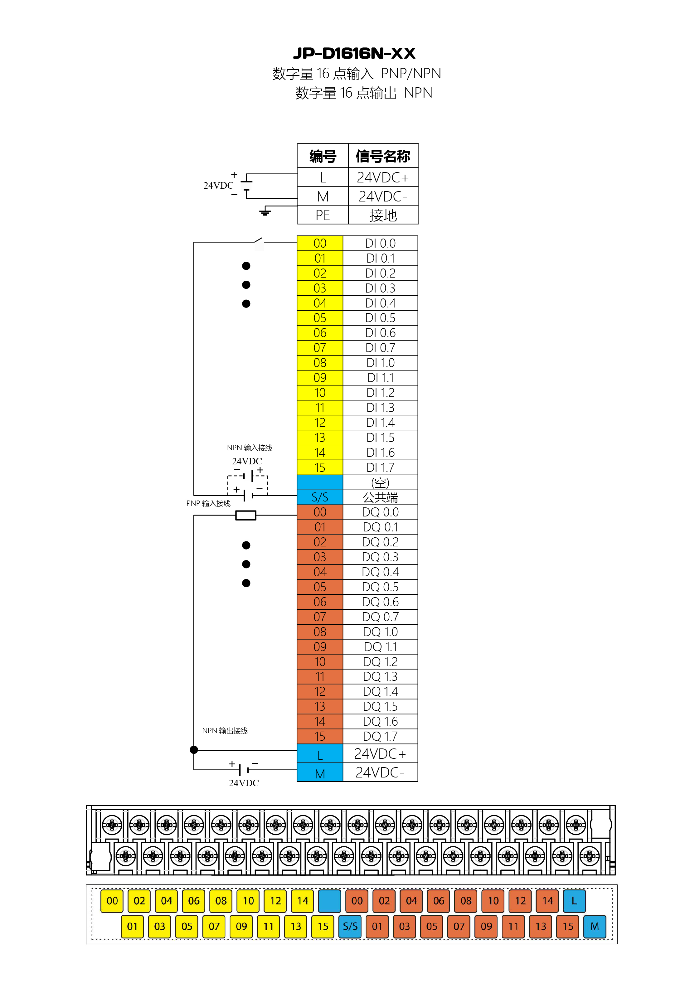 柵欄式螺釘分布式I/O,雙網口,可級聯,支持PROFINET RT協議,16DI_PNP&NPN,16DO_NPN,0.5A,24VDC