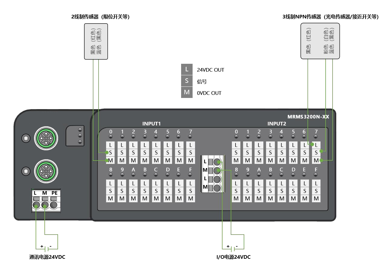 面板式快接線分布式I/O,EtherCAT通訊,2xM12,可級聯;數字量32入 NPN,24VDC,歐式彈簧端子;導軌安裝&打孔安裝(下單時需備注)