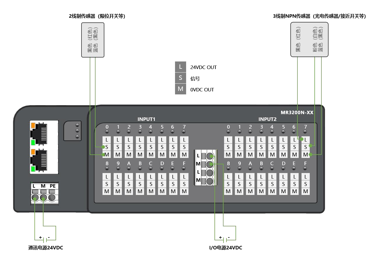 電源接口:模塊供電:3P歐式彈簧端子;負(fù)載供電:4P歐式彈簧端子