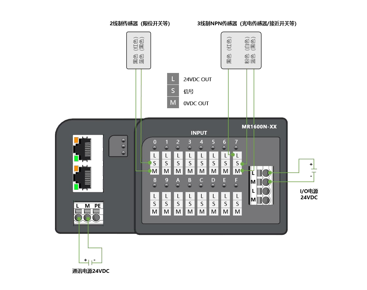 電源接口:模塊供電:3P歐式彈簧端子;負載供電:4P歐式彈簧端子