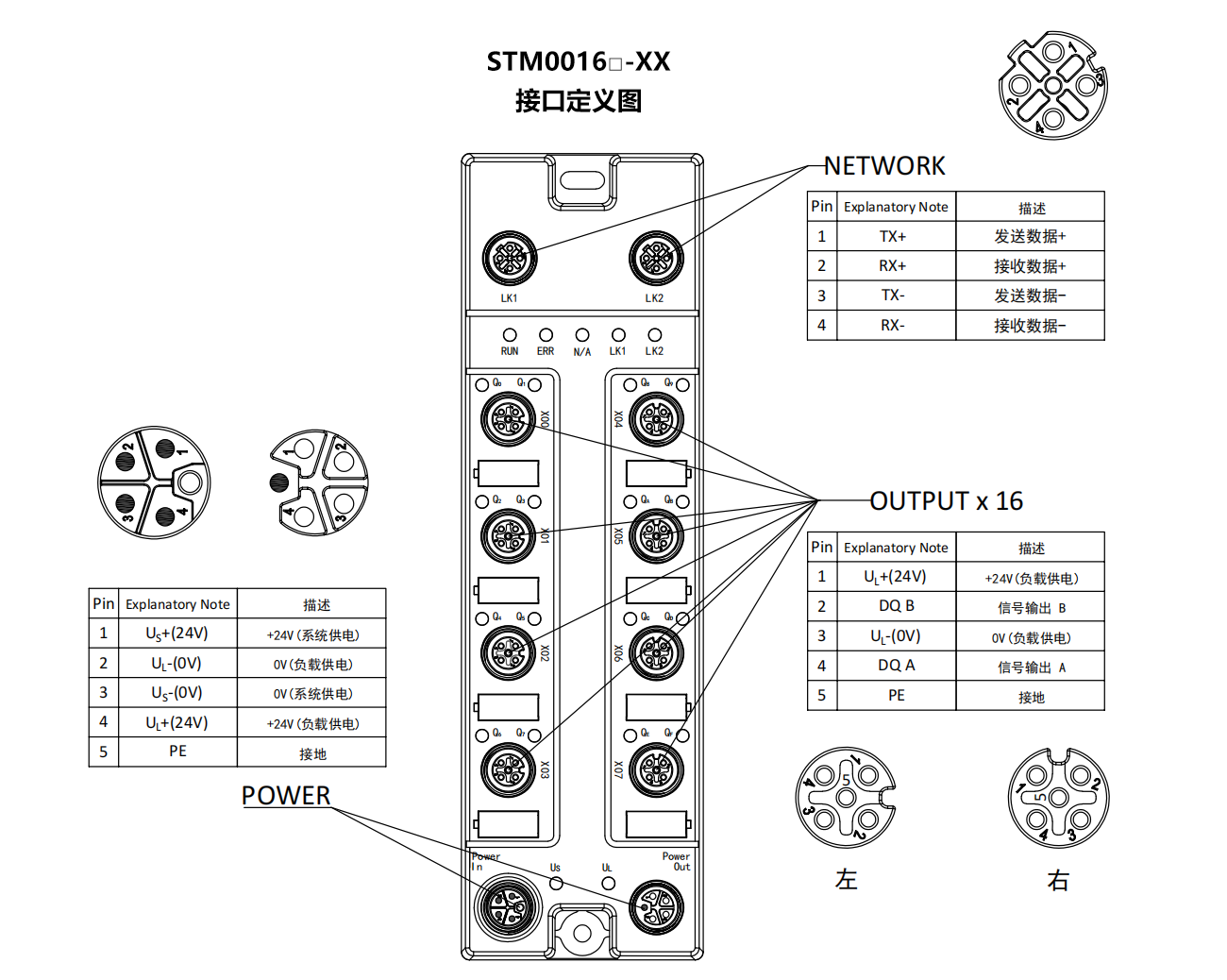 電源接口:Power In:1×M12,L-Code,4P針;Power Out:1×M12,L-Code,4P孔(最大電流16A)