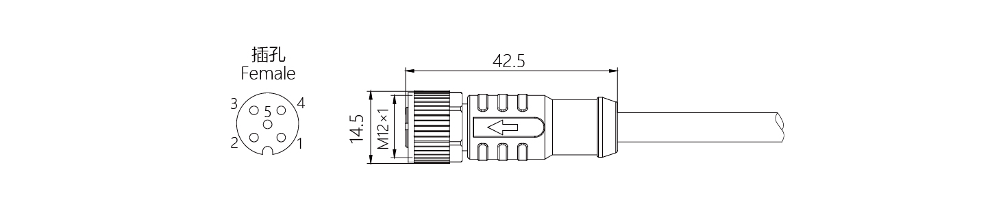 規格描述:M12-散線,直型孔-5芯散線,A-Code